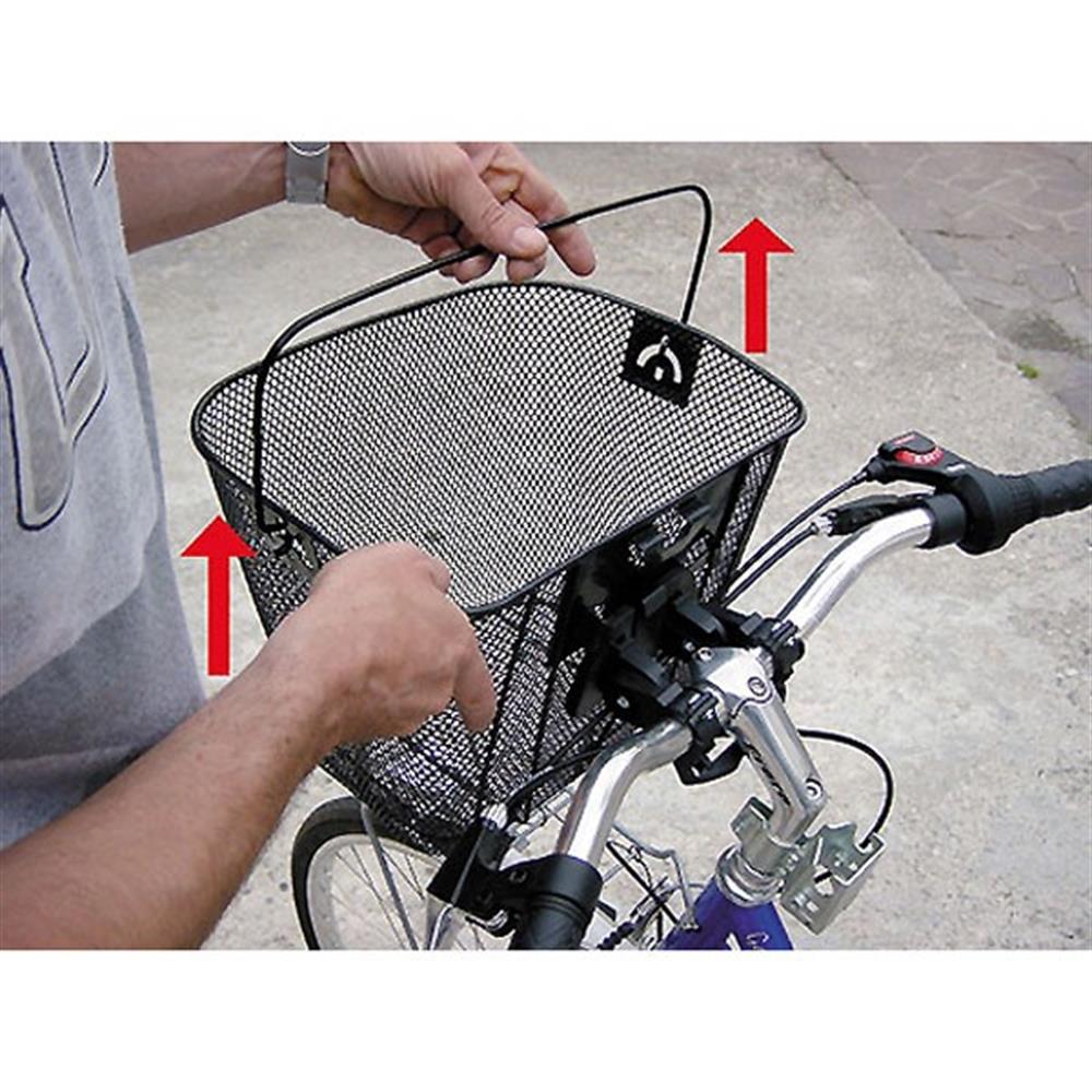Καλάθι ποδηλάτου τετράγωνο με Quick Release. Με χερούλι και σύστημα άμεσης απελευθέρωσης.