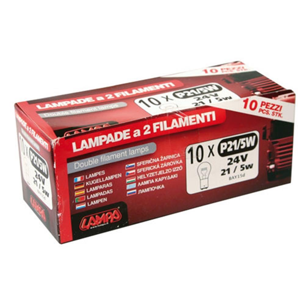Διπολική Λάμπα 24V P21/5W - BAΥ15d - Συσκευασία 10 τεμαχίων. Για φώτα φρένων με ίσια ακίδα. Διαστάσεις 52,5x26.5mm