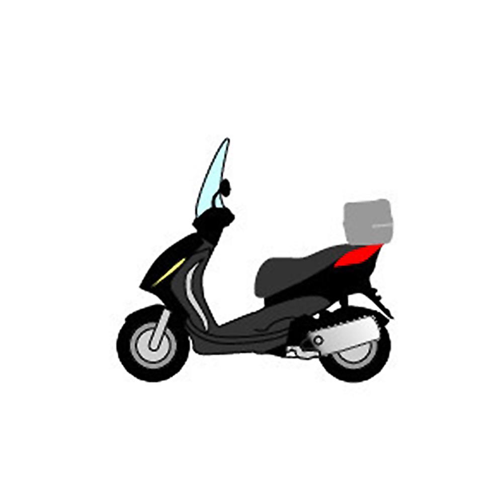 Κουκούλα μοτοσυκλέτας Silver-Lite για μικρές μηχανές με ανεμοθραύστη και μπαγκαζιέρα, αδιάβροχη, ελαφριά, με στρώση της επιφάνειας με PVC, πάχους 0,18mm για τέλεια προστασία βροχής, σκόνης και αντανάκλασης του ήλιου. Η κουκούλα χρησιμοποιεί το εξελι