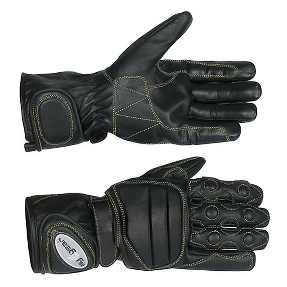 Γάντια μοτοσυκλέτας T-Maxter δερμάτινα, σε μαύρο χρώμα με κίτρινη ραφή (Small).