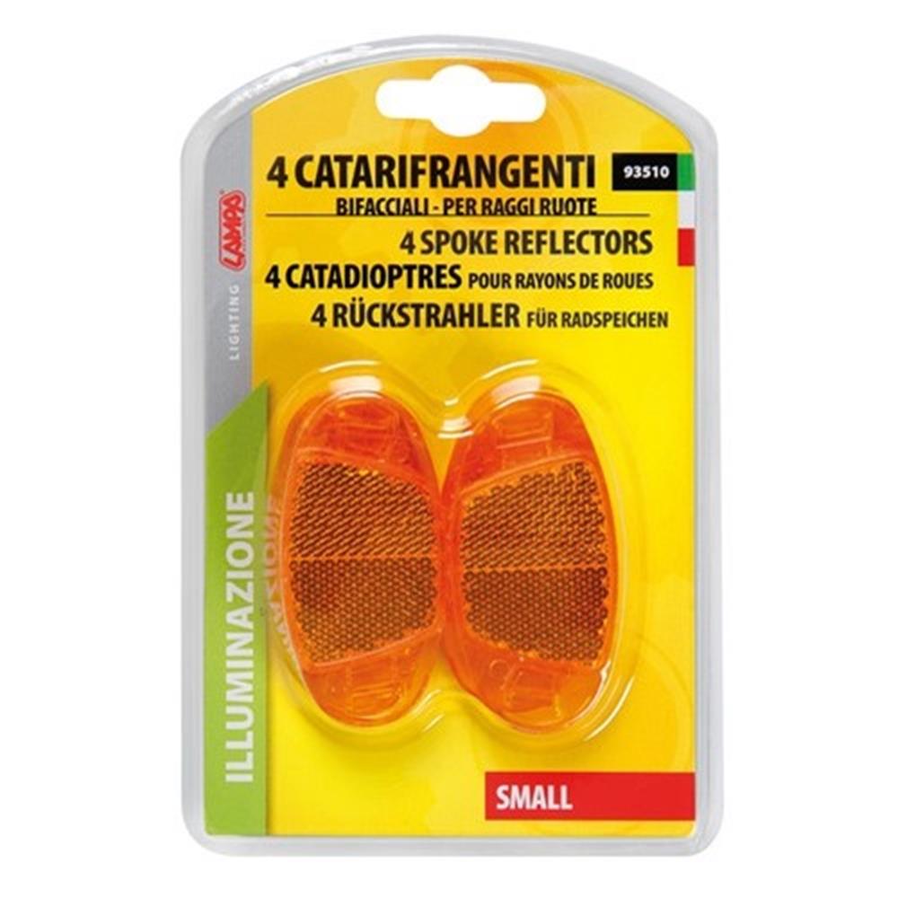 Ανακλαστήρες για ακτίνες ποδηλάτου μικροί 4 τεμάχια. Στερεώνονται στις ακτίνες του ποδηλάτου και προσθέτουν ασφάλεια στις μετακινήσεις.