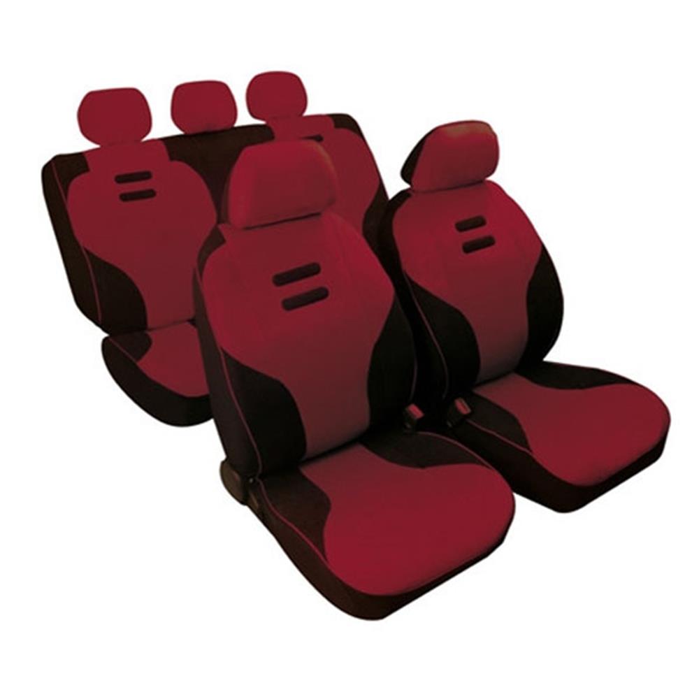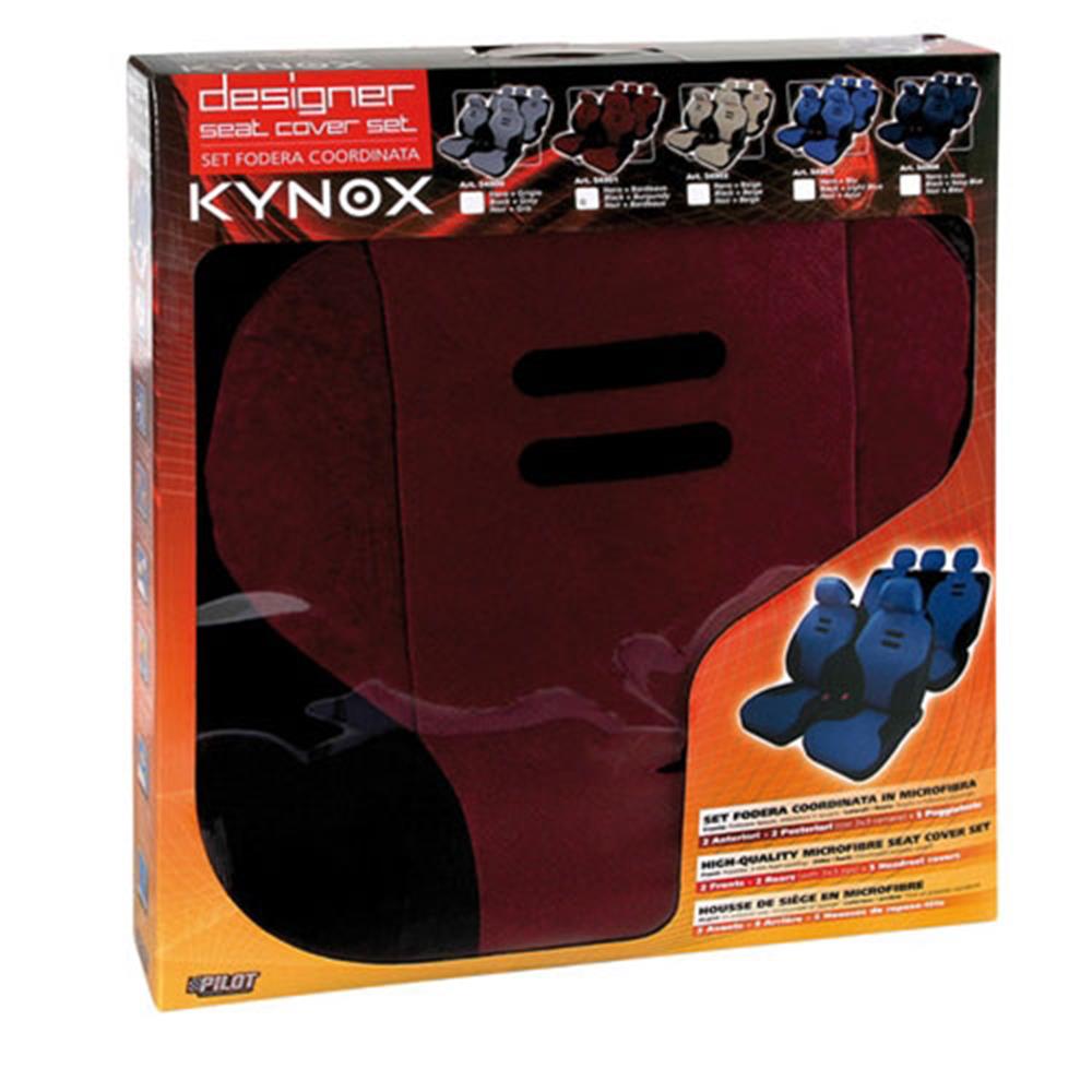 KYNOX μαύρο-μπορντό σετ καλυμάτων με εύκολη και γρήγορη εφαρμογή σε όλα τα αυτοκίνητα με 3 + 3 φερμουάρ και αφρώδη γέμιση. Περιλαμβάνει: 2 μπροστινά και 2 πισινά καλύμματα με 5 προσκέφαλα.